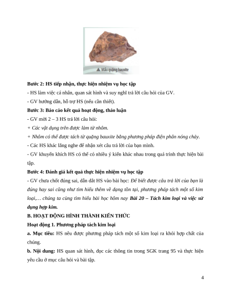 Giáo án Bài 20 KHTN 9 Kết nối tri thức (2024): Tách kim loại và việc sử dụng hợp kim