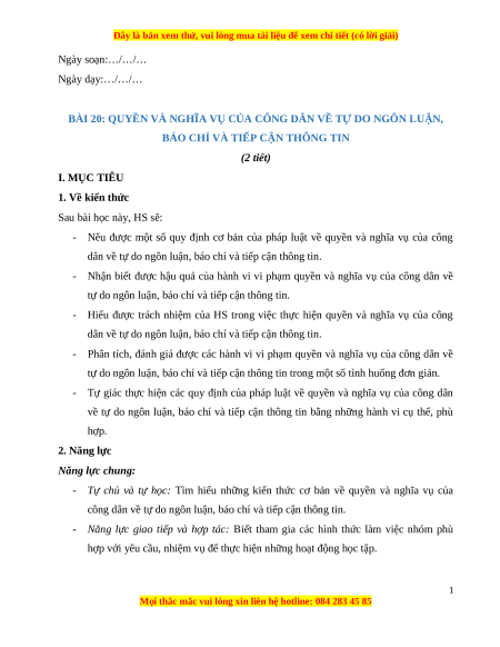 BÀI 20: QUYỀN VÀ NGHĨA VỤ CỦA CÔNG DÂN VỀ TỰ DO NGÔN LUẬN,