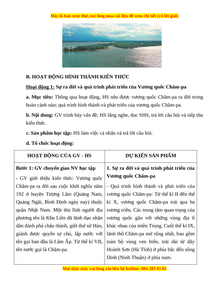 Giáo án Bài 20 Lịch sử 6 Chân trời sáng tạo (2024): Vương quốc cổ Champa từ thế kỉ II đến thế kỉ X