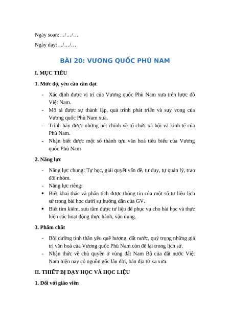 BÀI 20: VƯƠNG QUỐC PHÙ NAM I. MỤC TIÊU