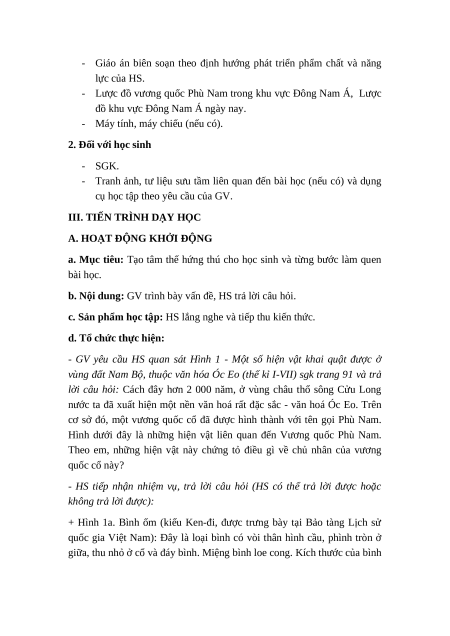 - Nhận biết được một số thành tựu văn hoá tiêu biểu của Vương quốc Phù Nam 2. Năng lực