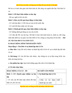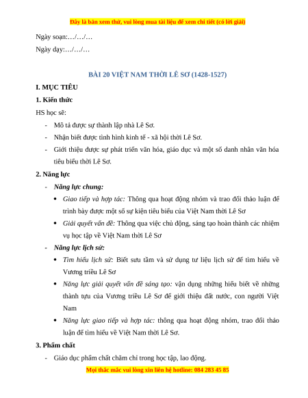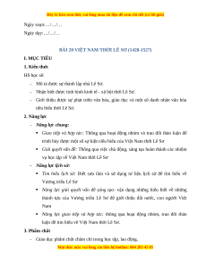 BÀI 20 VIỆT NAM THỜI LÊ SƠ (1428-1527) I. MỤC TIÊU 1. Kiến thức HS học sẽ: