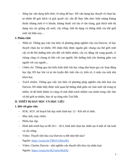 dạng của các giống vật nuôi, cây trồng; tính đa dạng và thống nhất của thế giới sinh vật hiện nay.... 3. Phẩm chất