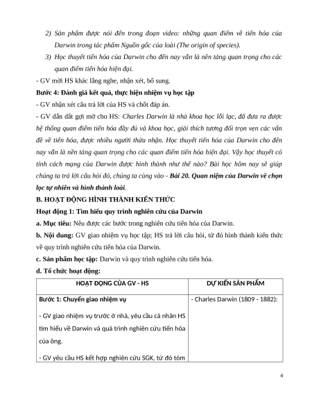 Giáo án Bài 20 Sinh học 12 Kết nối tri thức: Quan niệm của Darwin về chọn lọc tự nhiên và hình thành loài