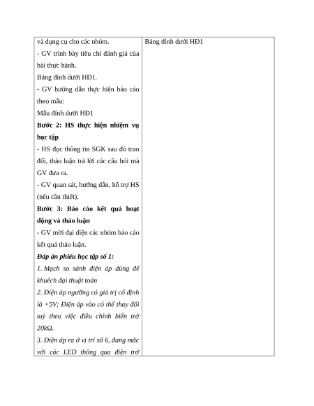 và dụng cụ cho các nhóm. Bảng đính dưới HĐ1