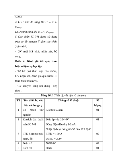 2. Lựa chọn thiết bị, vật liệu và dụng cụ