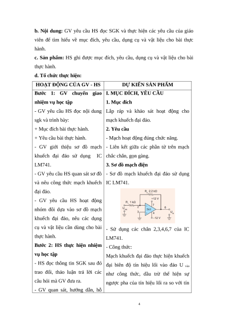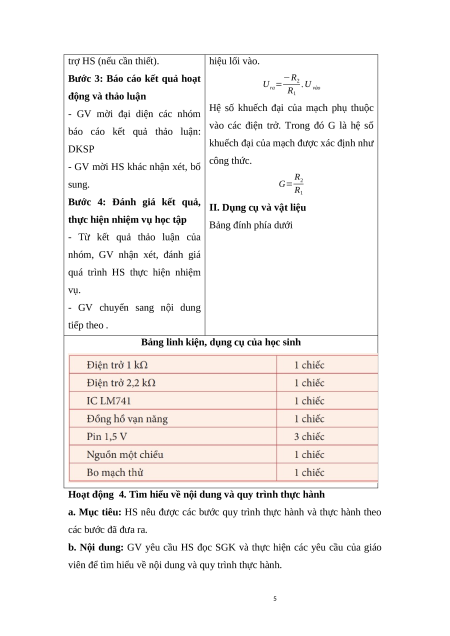 Giáo án Bài 20: Thực hành: Mạch khuếch đại đảo Công nghệ 12 Kết nối tri thức