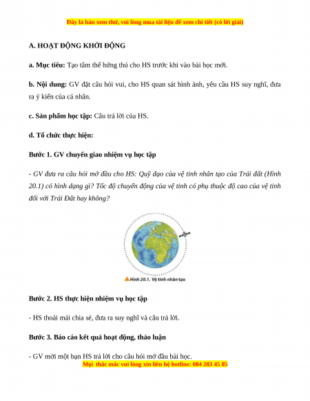 - Quỹ đạo của vệ tinh nhân tạo của Trái Đất (Hình 20.1) có hình dạng tròn.