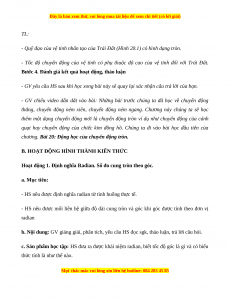 - HS nêu được mối liên hệ giữa độ dài cung tròn và góc khi góc được tính theo đơn vị radian