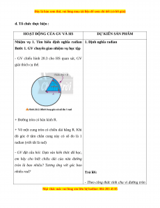 Hoạt động 1. Định nghĩa Radian. Số đo cung tròn theo góc.