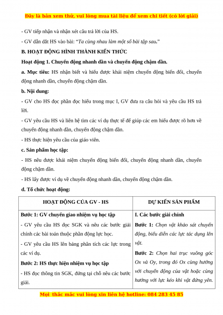 động nhanh dần, chuyển động chậm dần. b. Nội dung: