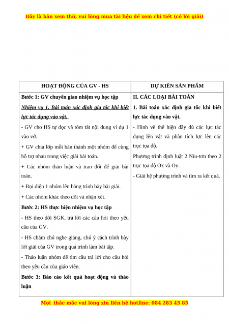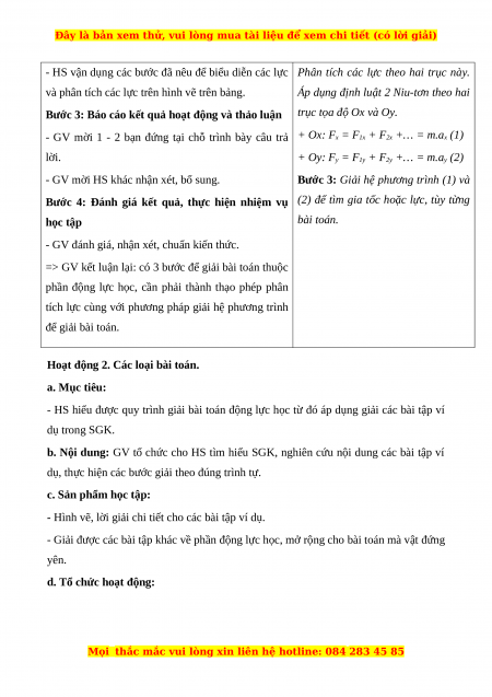 - HS hiểu được quy trình giải bài toán động lực học từ đó áp dụng giải các bài tập ví dụ trong SGK.