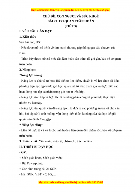 - Trình bày được một số việc cần làm hoặc cần tránh để giữ gìn, bảo vệ cơ quan tuần hoàn. 2. Năng lực: