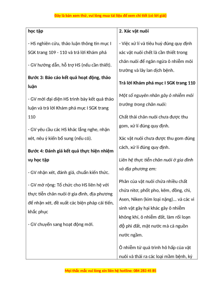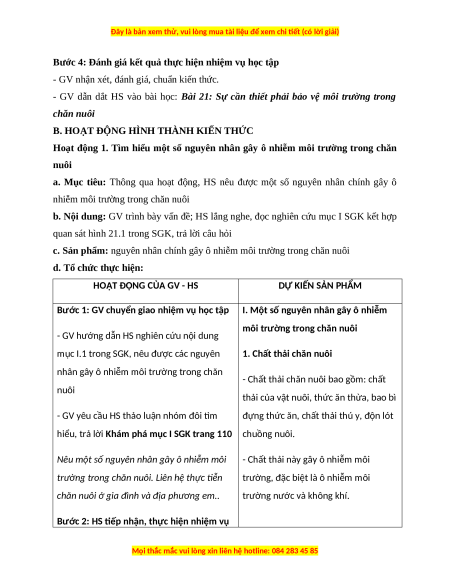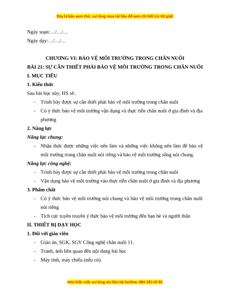 Giáo án Bài 21 Công nghệ chăn nuôi 11 Kết nối tri thức: Sự cần thiết phải bảo vệ môi trường trong chăn nuôi