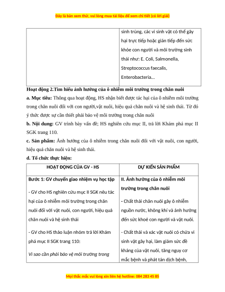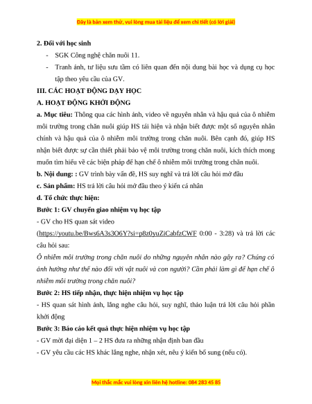 chính và hậu quả của ô nhiễm môi trường trong chăn nuôi. Bên cạnh đó, giúp HS