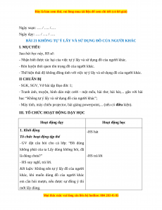 - Nhận biết được tác hại của việc tự ý lấy và sử dụng đồ của người khác.