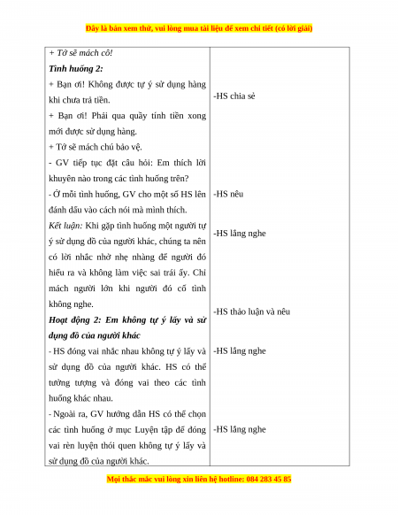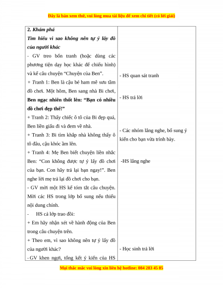 Hoạt động 2: Em không tự ý lấy và sử