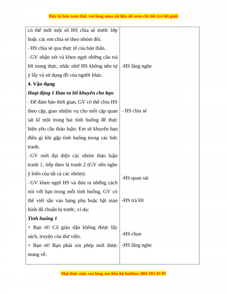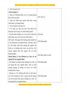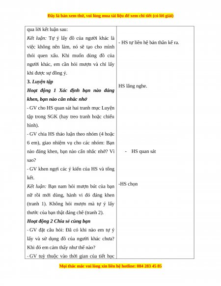 người khác, em cần hỏi mượn và chỉ lấy khi được sự đồng ý. 3. Luyện tập HS lắng nghe.