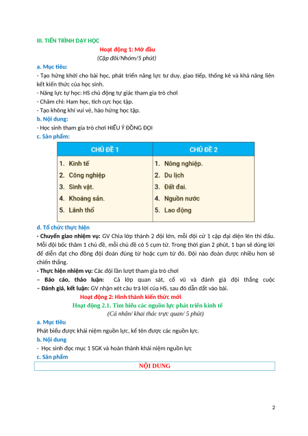 Hoạt động 2.1. Tìm hiểu các nguồn lực phát triển kinh tế