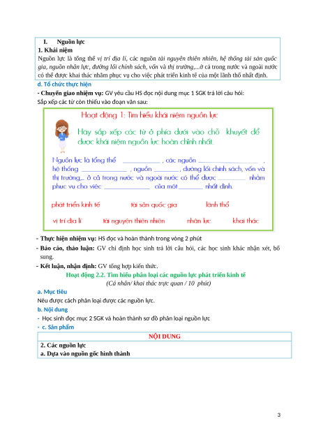 Nêu được cách phân loại được các nguồn lực. b. Nội dung