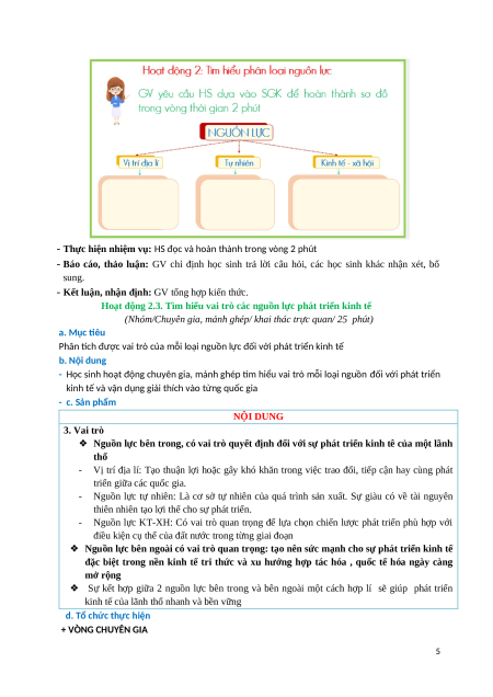 - Năng lực giao tiếp và hợp tác: tự giác để thảo luận với HS khác về vai trò nguồn lực, đồng