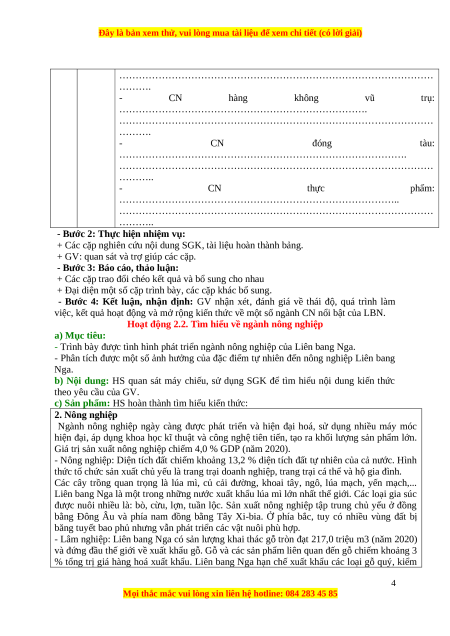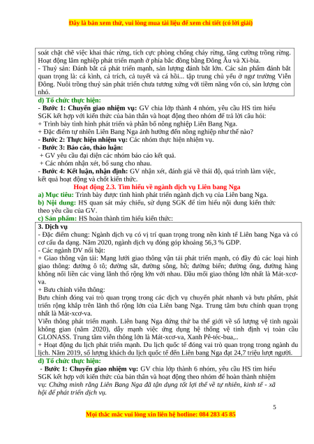 2. Học liệu: Bản đồ, sách giáo khoa, tư liệu, tranh ảnh về bài giảng về kinh tế Liên Bang Nga.