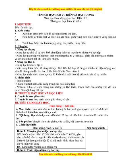 TÊN BÀI DẠY: BÀI 21. BIỂN VÀ ĐẠI DƯƠNG