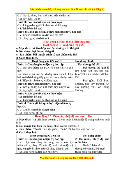 Môn học/Hoạt động giáo dục: ĐỊA LÍ 6