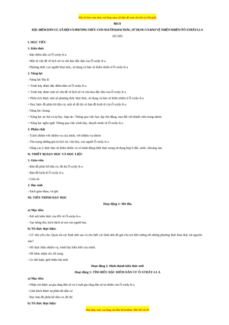 Giáo án Bài 21 Địa lí 7 Cánh diều (2024): Đặc điểm dân cư, xã hội và phương thức con người khai thác, sử d-li-a