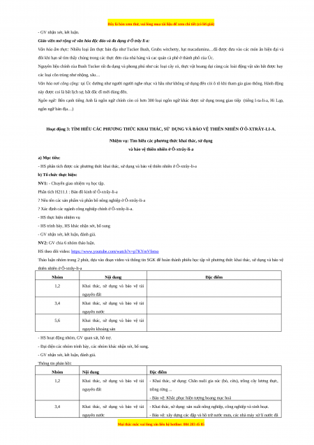- HS phân tích được các phương thức khai thác, sử dụng và bảo vệ thiên nhiên ở Ô-xtrây-li-a