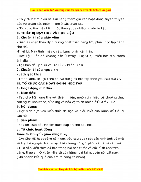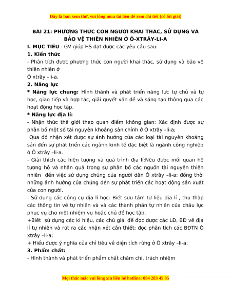 Giáo án Bài 21 Địa lí 7 Chân trời sáng tạo (2024): Phương thức con người khai thác, sử dụng và bảo vệ thiên nhiên ở Ô - Xtrây-Li-A