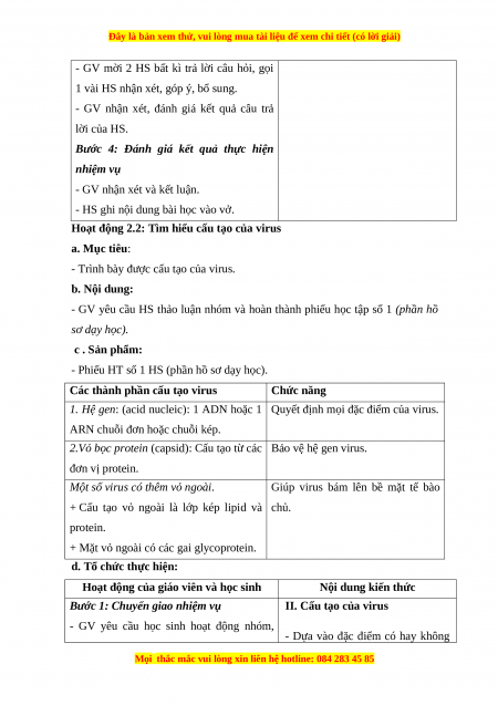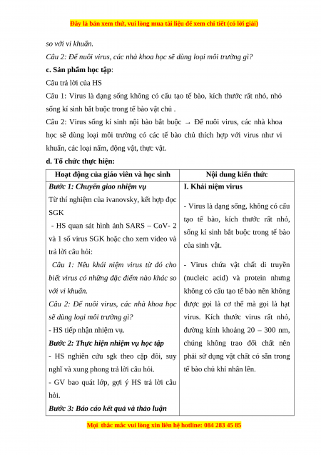- Nêu được khái niệm và các đặc điểm của virus. b. Nội dung: