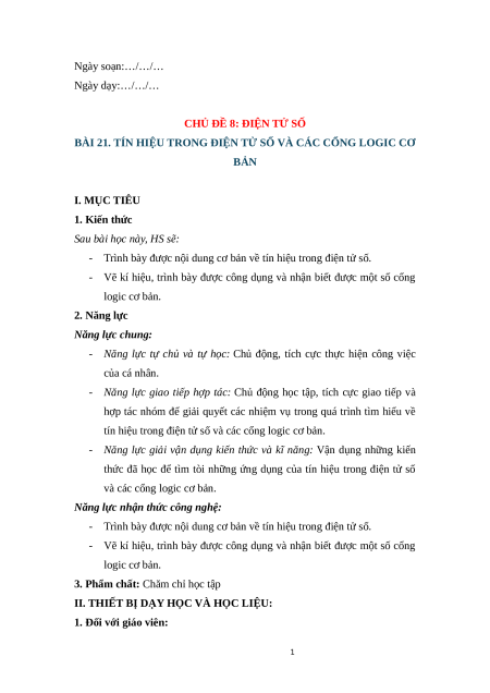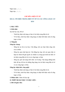 BÀI 21. TÍN HIỆU TRONG ĐIỆN TỬ SỐ VÀ CÁC CỔNG LOGIC CƠ BẢN I. MỤC TIÊU 1. Kiến thức