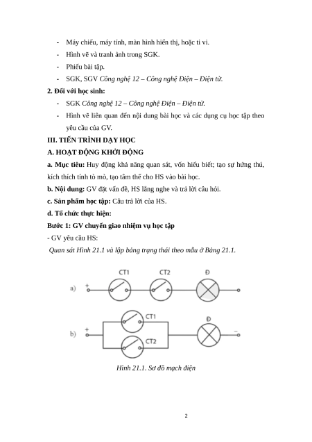 Hình 21.1. Sơ đồ mạch điện 2 2 CT1 CT2 Đ Mở Mở ? Mở Đóng ? Đóng Mở ? Đóng Đóng ?