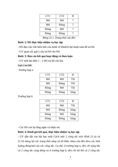 Bảng 21.1. Trạng thái của đèn