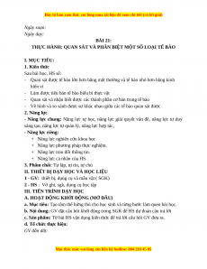 THỰC HÀNH: QUAN SÁT VÀ PHÂN BIỆT MỘT SỐ LOẠI TẾ BÀO I. MỤC TIÊU: 1. Kiến thức Sau bài học, HS sẽ: