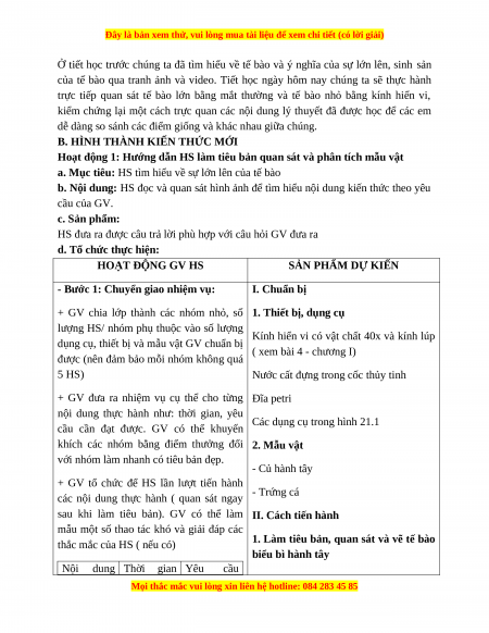 + GV cũng nên chuẩn bị sẵn tiêu bản tế