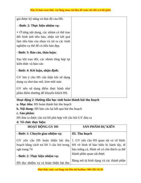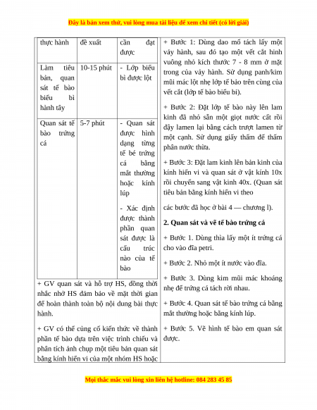 để hoàn thành toàn bộ nội dung bài thực + Bước 4. Quan sát tế bào trứng cá bằng hành.