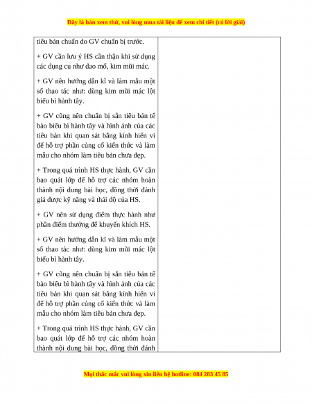 - Làm được tiêu bản tế bào biểu bì thực vật