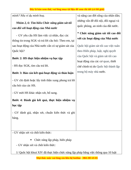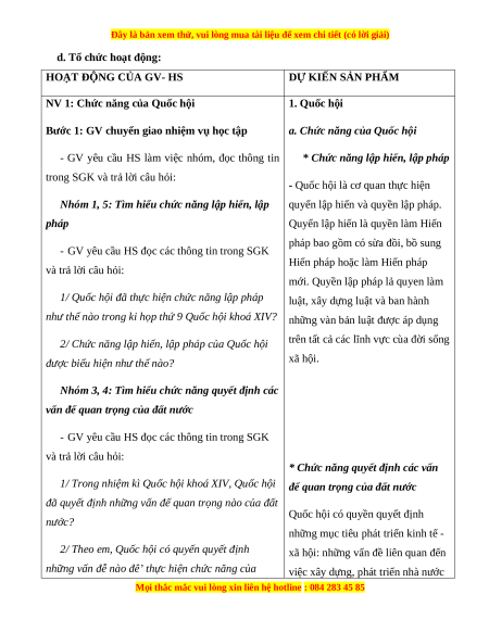 - GV nhận xét và dẫn dắt: Một số hoạt động của Quốc hội (hoặc Chủ tịch nước, Chính