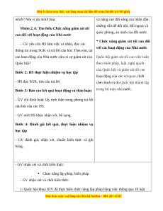 - GV yêu cấu HS kể một số hoạt động của Quốc hội (hoặc Chủ tịch nước, Chính