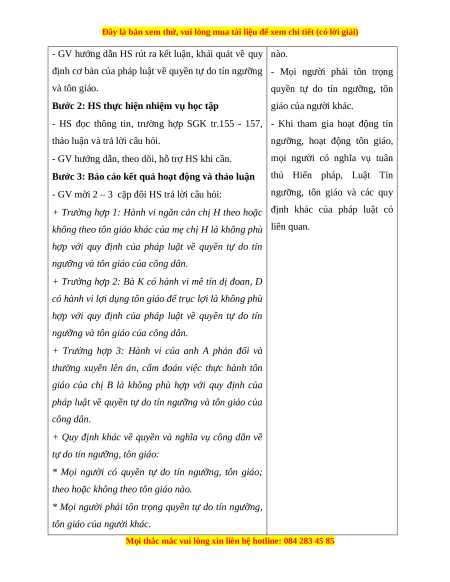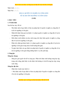 Giáo án Bài 21 KTPL 11 Chân trời sáng tạo: Quyền và nghĩa vụ công dân về tự do tín ngưỡng và tôn giáo