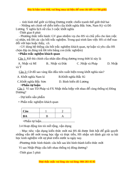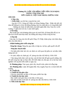 àm cho nhân dân ta vô cùng kh n kh ố ổ - Nh ng nét ữ chính v di ề n ễ bi n ế c a kh ủ i ở nghĩa B c S ắ n, ơ Nam Kỳ và Đô Lư ng. Ý ơ nghĩa lịch sử c a 3 cu ủ c ộ kh i ở nghĩa 2. Kỹ năng Rèn luy n h ệ c s ọ inh phư ng ơ pháp quan sát tranh nh, ả sử d ng b ụ n đ ả ,các t ồ ư li u l ệ ịch s đ ử ể minh h a ọ kh c ắ sâu nh ng n ữ i ộ dung c b ơ n t ả rong bài h c. ọ 3.Thái độ Giáo d c ụ h/s lòng căm thù đ ế qu c ố Pháp, FX Nh t ậ , khâm ph c ụ tinh th n ầ dũng c m ả c a nhân ủ dân ta 4.Đ nh h ị ư ng phá ớ t tri n năng l ể c ự -Năng l c ự chung: Năng l c gi ự ao ti p và ế h p t ợ ác; t h ự c; ọ gi i ả quy t ế v n đ ấ ề - Năng l c ự chuyên bi t ệ + Tái hi n ệ ki n ế th c ứ l ch ị s , ử xác đ nh ị các m i ố quan h ệ gi a ữ các s ự ki n, ệ hi n ệ tư ng ợ l ch s ị ử + So sánh, nh n xét ậ , đánh giá, v phong t ề rào dân ch t ủ h i ờ kỳ 1936-1939 + V n ậ d ng ụ ki n ế th c ứ m i ớ mà h c ọ sinh đã lĩnh h i ộ để gi i ả quy t ế nh ng ữ v n ấ đề m i ớ trong h c ọ t p ậ và th c ự ti n. ễ HS bi t ế nh n