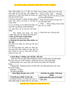 ơ knghĩa Nam Kỳ và binh bi n ế Đô Lư ng . ơ IV. Chu n b ẩ : ị 1. Chuẩn b c ị a g ủ iáo viên: - Giáo án, tranh nh ả , t l ư i u có l ệ iên quan, phi u h ế c ọ t p ậ 2. Chuẩn b c ị a h ủ c s ọ inh: - Đ c t ọ rư c s