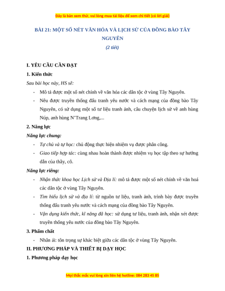 BÀI 21: MỘT SỐ NÉT VĂN HÓA VÀ LỊCH SỬ CỦA ĐỒNG BÀO TÂY NGUYÊN (2 tiết)
