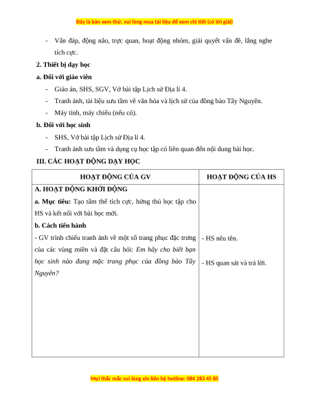 Giáo án Bài 21 Lịch sử & Địa lí lớp 4 Chân trời sáng tạo: Một số nét văn hóa và lịch sử của đồng bào Tây Nguyên