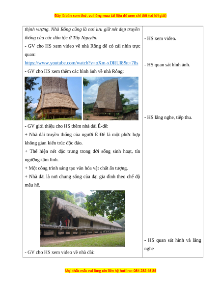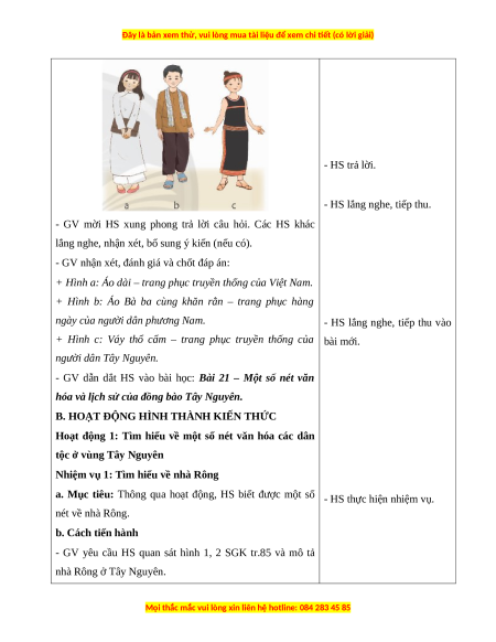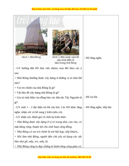a. Mục tiêu: Thông qua hoạt động, HS biết được một số - HS thực hiện nhiệm vụ. nét về nhà Rông. b. Cách tiến hành