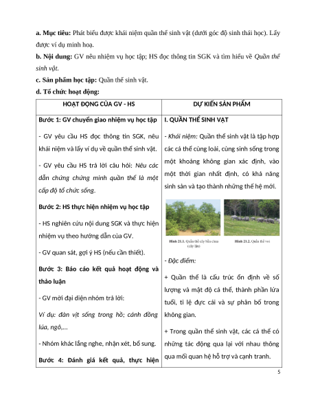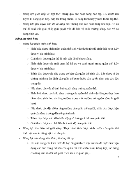 quần thể qua tiết học thực hành ngoài tự nhiên, nâng cao ý thức bảo vệ môi trường sống. 3. Phẩm chất