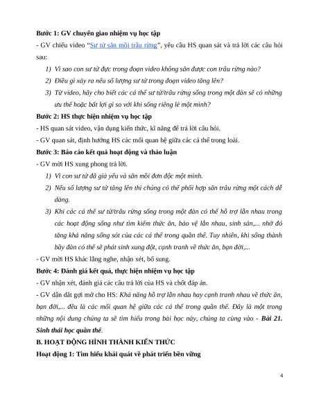 Hoạt động 1: Tìm hiểu khái quát về phát triển bền vững 4