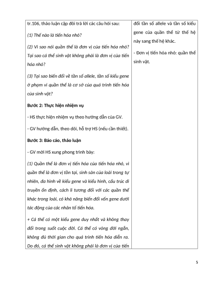 a. Mục tiêu: Nêu được khái niệm tiến hóa nhỏ và quần thể là đơn vị tiến hóa nhỏ.